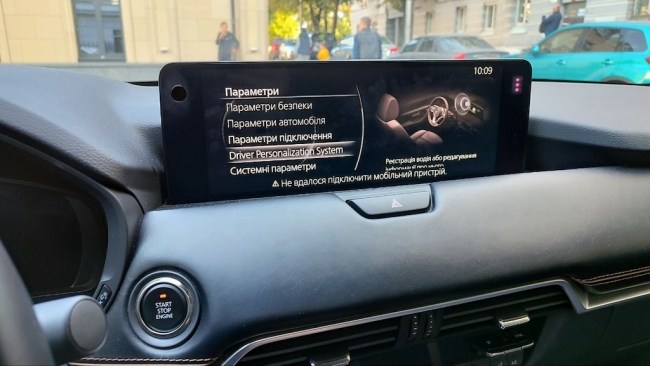 В іншому посадка за кермом комфортна, із запасом простору та регулювань навіть для високих водіїв та з фірмовими елементами Мазда. Не пухке кермо, взаєморозташування органів керування та приладів, пульт мультимедіа Mazda Connect під правою рукою - тут освоюєшься дуже швидко.